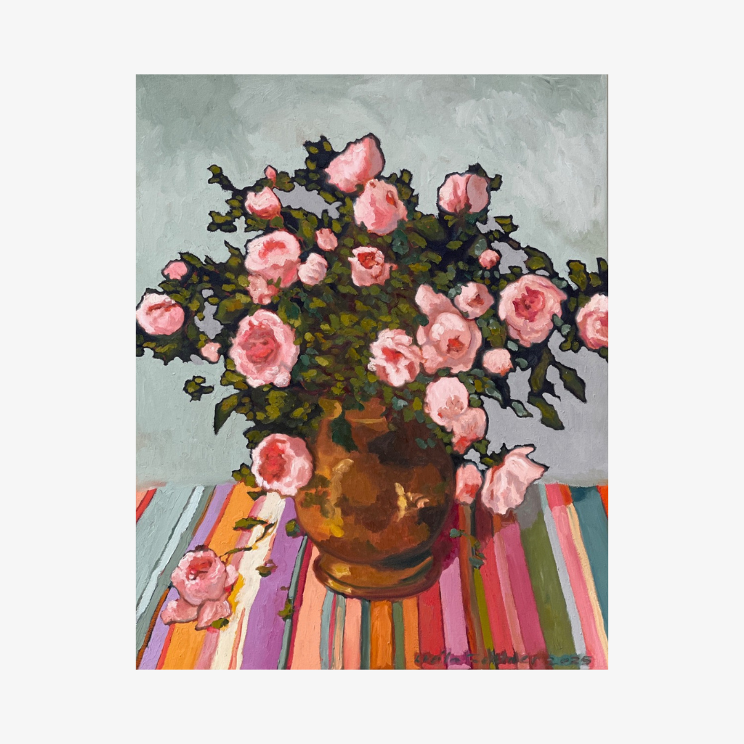 Lucila is an Australian oil painter of bright painterly florals, landscapes, portraits (Archibald finalist 2025) and an evolving series of kangaroo-masked family members (including one of her daughter in 2022 Salon des Refuses).